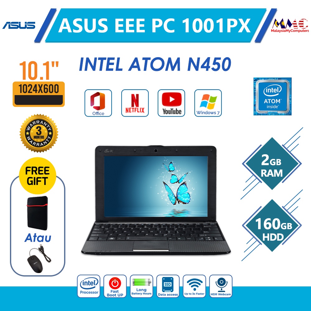 Asus Eee Pc 1001px 10 1 Netbook Laptop Intel Atom N450 1 66ghz 2gb Ram 160gb Hdd Shopee Malaysia